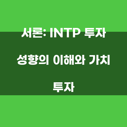서론: INTP 투자 성향의 이해와 가치 투자